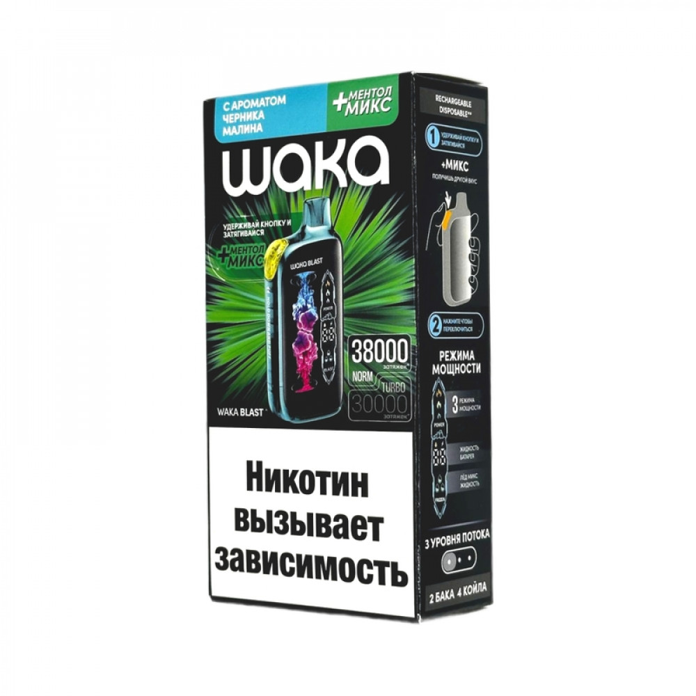 WAKA BLAST 38000 Hard - Черника малина + ментол микс - купить в Сухиничах